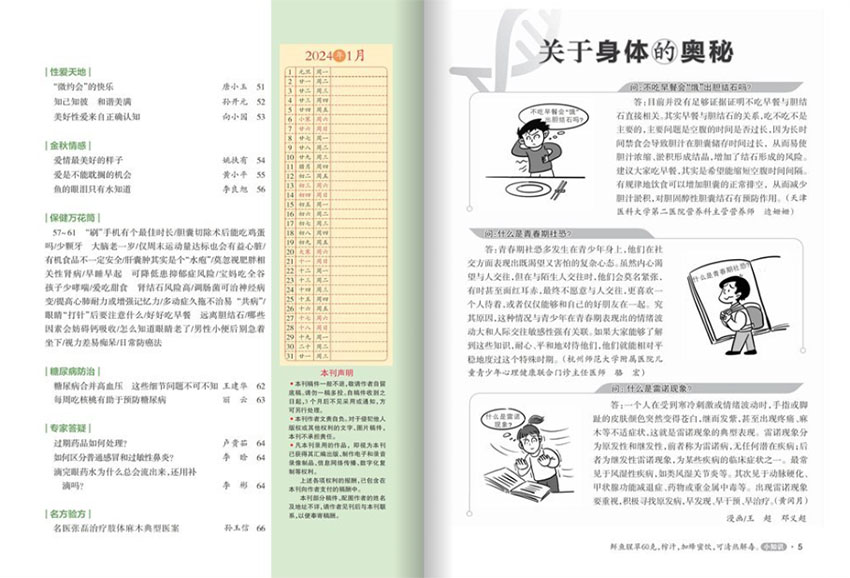 《保健與生活》雜志是一本深受廣大讀者喜愛的健康類刊物,以其科學(xué)實(shí)用、通俗易懂、物美價(jià)廉的特色,贏得了信得過、看得懂、用得上、買得起的贊譽(yù)。作為大眾健康責(zé)任主流媒體,它一直致力于幫助人們建立科學(xué)文明的生活方式,提高自我保健能力,增強(qiáng)身心健康。該雜志始終堅(jiān)守著為群眾提供高質(zhì)量健康信息的初心,作為國內(nèi)正規(guī)的健康類刊物,是讀者信賴的健康指南。雜志的內(nèi)容豐富多樣,涵蓋了女性健康、育兒百科、健康新知、藥膳食療、科學(xué)用藥、家庭中醫(yī)藥、心理健康等多個(gè)方面,既有針對性,又具普適性,滿足了不同讀者的需求,無論是關(guān)注自身健康的年輕人,還是關(guān)心家人健康的中老年人,都能在這本雜志中找到實(shí)用的健康知識(shí)和建議。