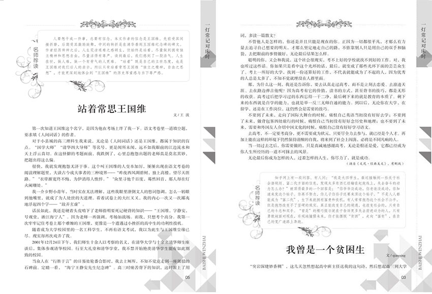 《百師文摘》雜志以其真實(shí)、感人、勵(lì)志的故事,給讀者帶來(lái)了豐富的閱讀體驗(yàn),不僅展現(xiàn)了校園生活的美好和珍貴,同時(shí)也啟發(fā)了讀者思考人生、珍視情感和努力奮斗的意義。希望每一位讀者通過(guò)該雜志找到自己在校園時(shí)光中的回憶和共鳴,為明天的奮斗注入激情,并揭示自己心靈中那一點(diǎn)點(diǎn)羞澀的秘密。