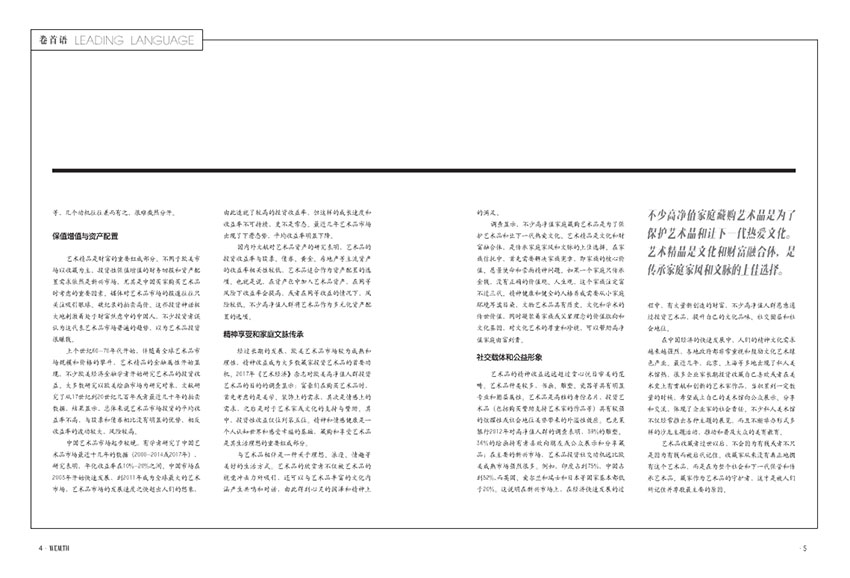 《財富管理》雜志作為一本內(nèi)容豐富、專業(yè)權(quán)威、實用性強、人文關(guān)懷并存的財富管理雜志,無論是追求財富增長的投資者,還是關(guān)心社會責(zé)任的公民,都可以在雜志中找到自己所需的財富智慧和品質(zhì)生活的引領(lǐng)。
