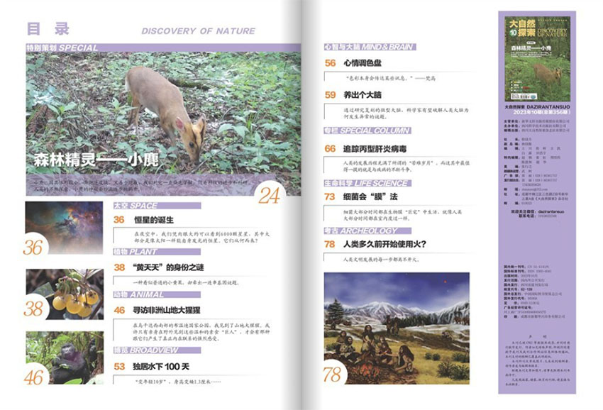 《大自然探索》雜志是一本內(nèi)容豐富、形式新穎、深受讀者歡迎的科普期刊,它不僅是中小學(xué)生和科學(xué)愛好者的科普讀物,更是不少專業(yè)人士和廣大群眾關(guān)注的科普精品。希望更多的人通過這本雜志,增加對大自然和科學(xué)的認識,探索科學(xué)的奧秘,感受科技帶來的樂趣與挑戰(zhàn)。
