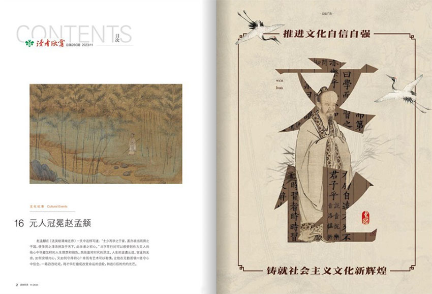 雜志堅持深入挖掘作品背后的文化內涵,同時也重視對人性的關懷。雜志發(fā)行的每一期都會選取一些具有代表性的作品,從外面的形式到內在的情感,仔細剖析解讀,為讀者提供深入參悟藝術、文化乃至人生的知識。在雜志的解讀中,讀者們不僅可以將作品的魅力盡收眼底,也可以對自己的思考進一步啟迪,并從中獲得深刻的感悟。