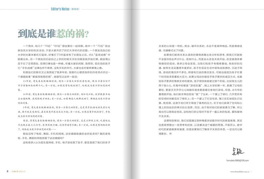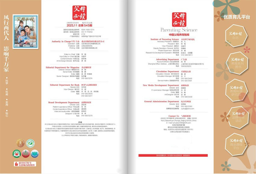 《父母必讀》雜志致力于為家長提供最具科學(xué)性、實(shí)用性和貼心性的育兒知識、養(yǎng)育技巧和親子故事。涵蓋了家庭生活中各種問題的全面解答,這些問題包括孩子的教育、兒童心理、親子關(guān)系、家庭健康、家庭財(cái)務(wù)、職場與家庭平衡等方面,通過提供專業(yè)的知識和實(shí)用性的技巧,該雜志幫助家長們更好地塑造自己的角色和責(zé)任,培養(yǎng)出健康、快樂、自尊和自立的孩子。