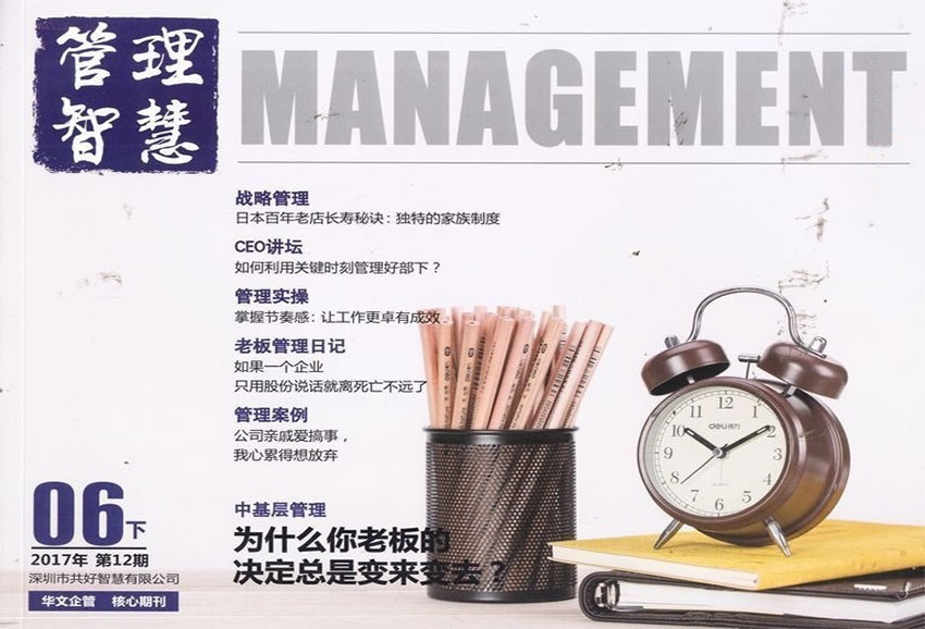 《管理智慧》雜志主要面向中國企業(yè)和管理者,通過提供最前沿的管理理念,分享優(yōu)秀企業(yè)的成功經(jīng)驗和管理實踐,幫助中國企業(yè)解決日常管理中遇到的各類問題,啟迪中國企業(yè)家的管理智慧。