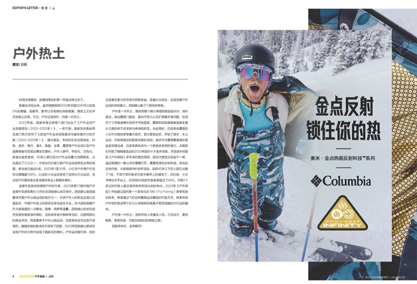 在雜志中,讀者可以找到各種類型的探險旅行故事和目的地介紹,無論是喜歡徒步旅行、野外露營、攀登高峰、滑雪、潛水還是其他任何戶外運(yùn)動,都能在本雜志中找到相關(guān)的內(nèi)容,通過深入的報道和美麗的照片,讀者可以窺見世界各地一些最壯麗的景觀和神奇的自然奇觀。此外,雜志還向讀者介紹了一系列專門的戶外裝備并提供購買指南,從登山鞋到帳篷、背包和相機(jī)設(shè)備,本雜志提供了專業(yè)意見和建議,幫助讀者選擇合適的裝備,確保他們的探險之旅更加安全和舒適。