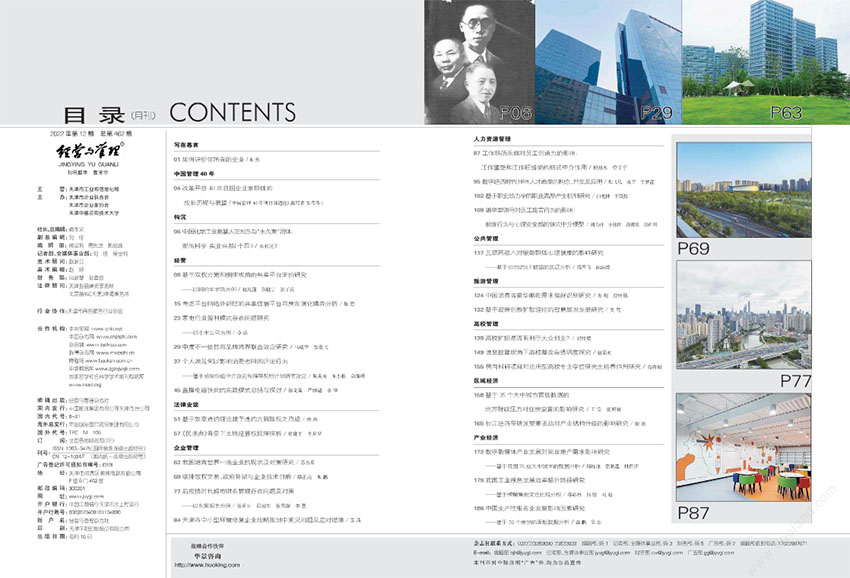 雜志聚焦于企業(yè)管理領(lǐng)域的前沿理論和實踐,涵蓋戰(zhàn)略管理、組織行為、人力資源管理、營銷管理、財務(wù)管理等多個方面。在內(nèi)容上,除了傳播學術(shù)研究成果外,還注重分享企業(yè)成功案例、管理經(jīng)驗和最新趨勢,旨在為讀者提供豐富多彩的視角和實用價值。作為讀者,通過閱讀本雜志,將獲得來自世界各地優(yōu)秀學者和業(yè)界領(lǐng)袖的獨到見解和經(jīng)驗分享。無論是企業(yè)管理者、學者還是管理學愛好者,都能在這里找到適合自己的知識和啟發(fā)。