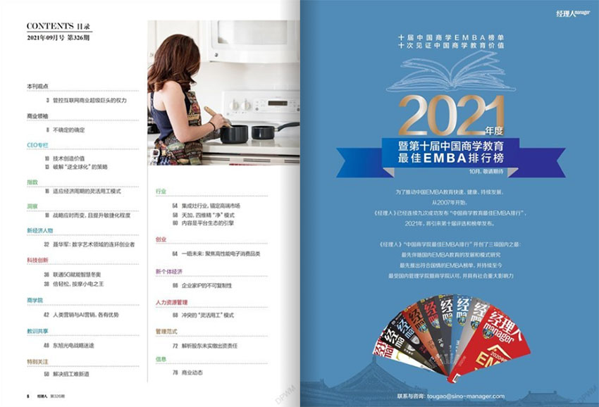 《經(jīng)理人》雜志不僅是一本管理類的高端雜志,更是一本具有影響力和號(hào)召力的權(quán)威媒體,它致力于傳播管理智慧,推動(dòng)管理實(shí)踐的創(chuàng)新和提升,為中國的商業(yè)和管理發(fā)展做出積極的貢獻(xiàn)。