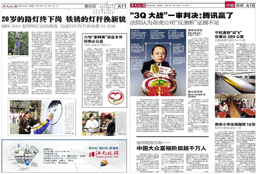 《江南晚報(bào)》是江蘇省最具影響力的媒體之一。主要報(bào)道南京市和江蘇省的新聞,以及全國重要新聞和國際新聞。內(nèi)容包括政治、經(jīng)濟(jì)、文化、體育、社會(huì)等多方面的新聞報(bào)道和闡釋。其關(guān)注點(diǎn)位于江蘇省和南京市的社會(huì)生活,聚焦地方熱點(diǎn)事件,如新聞發(fā)布會(huì)、行業(yè)展示會(huì)、政治動(dòng)態(tài)等,同時(shí)關(guān)注國際時(shí)事,深度解讀國家大政方針,以及樹立強(qiáng)烈和獨(dú)立的社論。