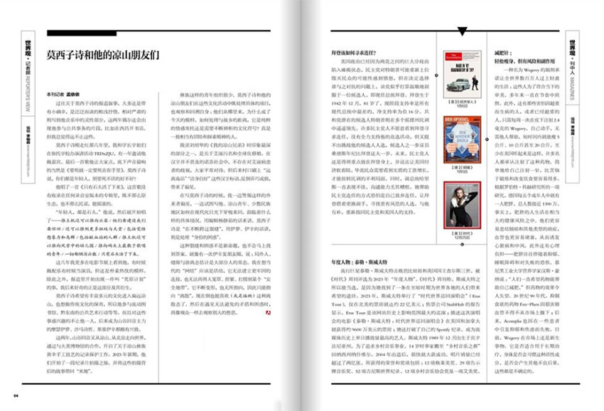作為一本富有人文關(guān)懷的雜志,在近年來不斷探索與創(chuàng)新,力求為讀者呈現(xiàn)更加深刻、更有溫度的人物報(bào)道,通過對不同人物的真實(shí)生活和內(nèi)心世界的揭示,讓讀者感受到每一個(gè)生命的獨(dú)特與珍貴,引發(fā)共鳴,激發(fā)人們對生活、人性、社會的思考。該雜志還致力于記錄時(shí)代的進(jìn)程,通過對不同時(shí)期、不同領(lǐng)域的人物的報(bào)道,呈現(xiàn)出中國社會的變遷和發(fā)展,這樣的報(bào)道,不僅為讀者提供了寶貴的歷史資料,也為歷史留存了一份底稿。