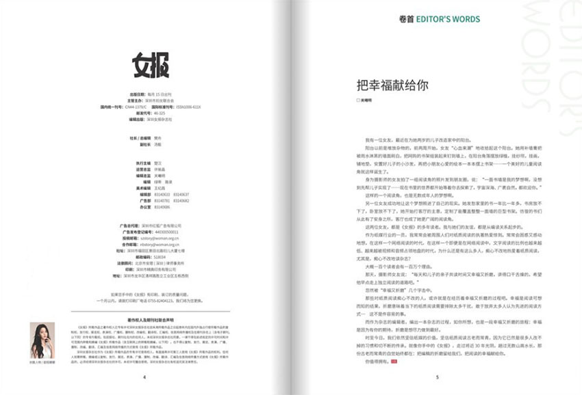 《女報(bào)》雜志是一本注重服務(wù)時(shí)尚女性的多方位綜合雜志,它以情感宣泄和解決、身心健康、生活技巧和職業(yè)發(fā)展為主要內(nèi)容,為讀者提供豐富多彩的信息和實(shí)用的建議,無論是在時(shí)尚圈還是在生活中,雜志都以飽滿的熱情滿足女性讀者的需求,成為她們的忠實(shí)伴侶和指南。