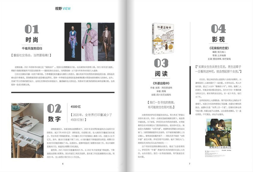 雜志關(guān)注女性在生活方面的需求,它提供了各種有關(guān)家庭、家居、孩子教育和家庭管理等方面的實(shí)用建議,無論是打造溫馨的家庭環(huán)境,還是經(jīng)營和諧的家庭關(guān)系,雜志都會(huì)為讀者提供專業(yè)的指導(dǎo),讓她們?cè)谏钪懈映錾妥孕?。雜志關(guān)注女性在職場中的發(fā)展,它分享了職業(yè)成長的經(jīng)驗(yàn)和技巧,提供了職業(yè)規(guī)劃和職場管理的指導(dǎo),幫助女性更好地面對(duì)職場挑戰(zhàn)和機(jī)遇,雜志還關(guān)注女性在創(chuàng)業(yè)和領(lǐng)導(dǎo)方面的需求,提供了創(chuàng)業(yè)經(jīng)驗(yàn)分享和領(lǐng)導(dǎo)力培養(yǎng)的相關(guān)內(nèi)容,鼓勵(lì)女性在職場中實(shí)現(xiàn)自己的夢(mèng)想和目標(biāo)。