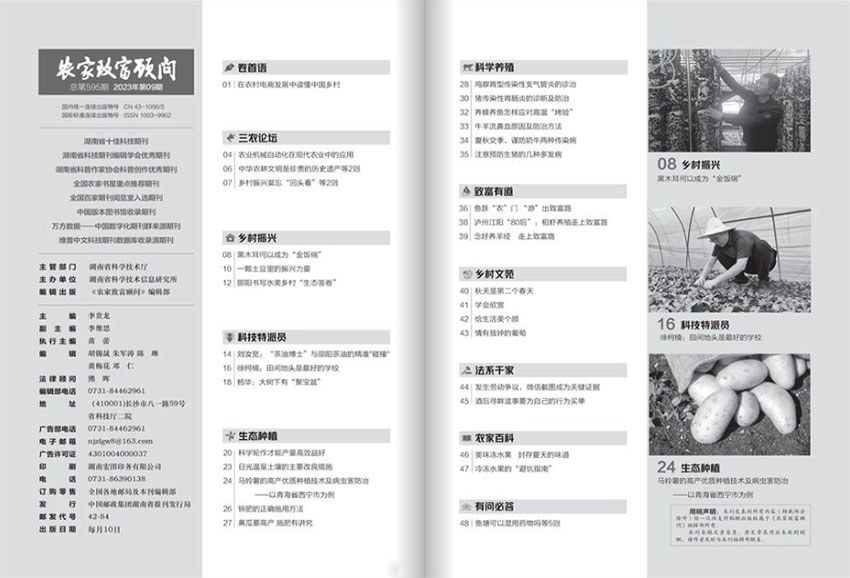雜志介紹農(nóng)村創(chuàng)業(yè)項(xiàng)目和就業(yè)機(jī)會(huì),為讀者提供創(chuàng)業(yè)經(jīng)驗(yàn)分享和就業(yè)指導(dǎo),幫助他們實(shí)現(xiàn)自我價(jià)值;提供農(nóng)村金融政策與金融產(chǎn)品信息,介紹農(nóng)業(yè)領(lǐng)域的投融資案例,引導(dǎo)讀者正確運(yùn)用金融工具支持農(nóng)業(yè)發(fā)展;解讀相關(guān)農(nóng)村政策法規(guī),幫助讀者了解政策導(dǎo)向、落實(shí)細(xì)則,引導(dǎo)他們依法經(jīng)營(yíng),獲得政策支持;介紹農(nóng)業(yè)科技創(chuàng)新成果與應(yīng)用案例,幫助讀者了解最新農(nóng)業(yè)科技趨勢(shì),提高農(nóng)業(yè)生產(chǎn)效率;分享農(nóng)產(chǎn)品加工技術(shù)和市場(chǎng)營(yíng)銷策略,幫助讀者實(shí)現(xiàn)農(nóng)產(chǎn)品的增值和銷售增收,拓展銷售渠道。