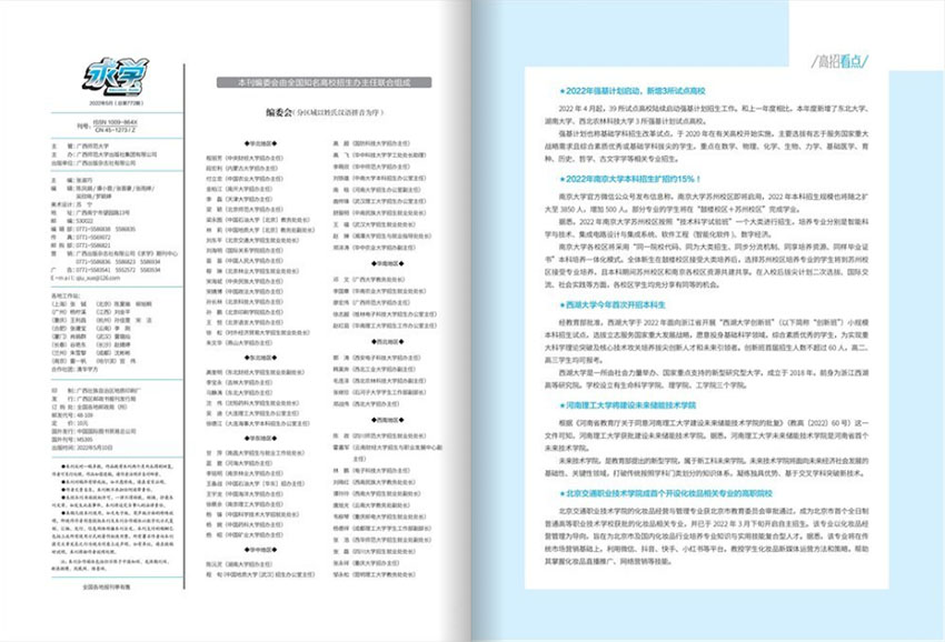 雜志旨在為大學生提供全面的教育資訊,無論是高中生準備高考,還是大學生選課擇業(yè),雜志都會涵蓋相關(guān)主題的資訊報道和分析解讀。不僅如此,它還關(guān)注學生的心理健康和職業(yè)發(fā)展,為廣大讀者提供實用的指導(dǎo)和建議。雜志以考研為特色,突出了對考研相關(guān)主題的跟蹤報道和深入研究,國內(nèi)外熱門專業(yè)、考研政策解讀、應(yīng)試技巧分享等內(nèi)容層出不窮。這使得該雜志成為了很多有考研意向的學生們不可或缺的參考資料,幫助他們在復(fù)雜的考研攻堅戰(zhàn)中獲得更多的勝出機會。