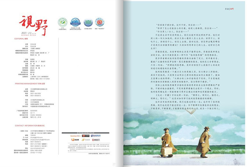 《視野》雜志是一本注重思想性和文化品位的綜合性刊物,致力于為讀者提供深入人文關(guān)懷的閱讀體驗(yàn)。該刊秉承以人為本、以讀者為本的原則,關(guān)注深入人類(lèi)內(nèi)心的主題和議題,旨在引領(lǐng)讀者深入思考、感悟人生。