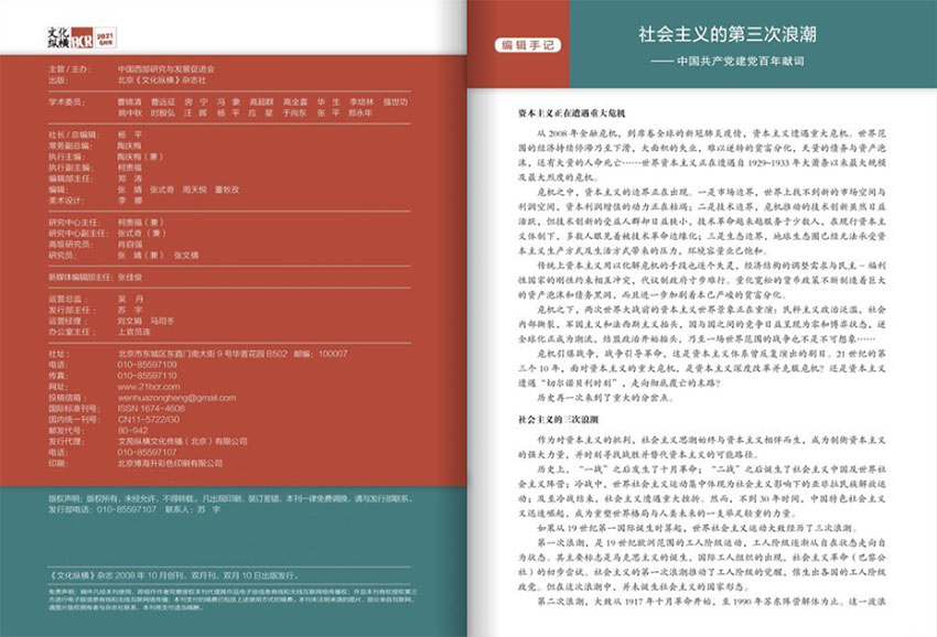《文化縱橫》雜志一直致力于探索中國文化的深層內(nèi)涵,推動文化重建和價值重生,在快速變化的時代背景和不斷調(diào)整的世界秩序中,該雜志積極尋求中國文化的新形象和新認知,以高端的思想評論為特色,展現(xiàn)了獨特的文化洞察力和前瞻性。雜志內(nèi)容涵蓋文化、歷史、哲學、藝術(shù)等多個領(lǐng)域,旨在通過深入的學術(shù)研究和豐富的文化實踐,為讀者提供一個全面、多元、深度的文化思考平臺,每期雜志都邀請國內(nèi)外知名學者、文化專家和藝術(shù)家撰寫專欄文章,分享他們的研究成果和心得體會,為讀者帶來全新的文化體驗和思考。雜志還注重文化實踐和社會現(xiàn)實的結(jié)合,關(guān)注當下社會的文化現(xiàn)象,探討文化與社會、政治、經(jīng)濟等各方面的互動關(guān)系,以期在理論和實踐之間架起一座橋梁,推動文化與社會的和諧發(fā)展。