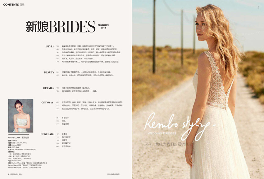 《新娘》雜志是一本專注于婚禮文化和時(shí)尚的雜志,被譽(yù)為準(zhǔn)新娘的閨中蜜友,是完美新娘的禮物。該雜志的使命在于傳遞國(guó)際婚禮文化資訊、引領(lǐng)新婚時(shí)尚潮流、促進(jìn)婚慶行業(yè)的發(fā)展。