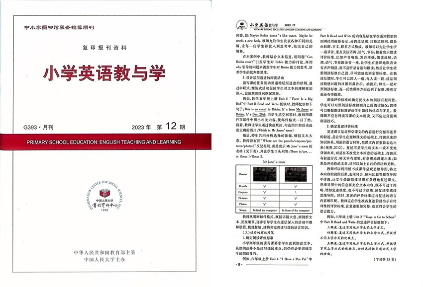 《復(fù)印報刊資料·小學(xué)英語教與學(xué)》雜志是一本專門針對小學(xué)英語教育的雜志,目標(biāo)是為小學(xué)生提供高質(zhì)量的英語教學(xué)資源和學(xué)習(xí)資料,幫助他們建立扎實(shí)的英語基礎(chǔ),提高他們的英語聽、說、讀、寫的能力。