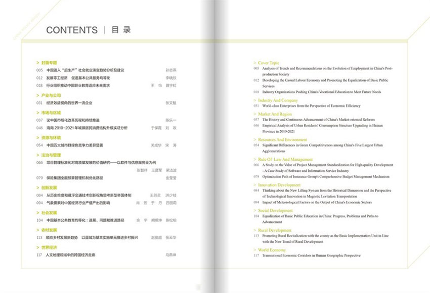 該雜志通過對經濟政策、產業(yè)發(fā)展、金融市場等領域的深度調研和分析,為讀者提供全面、權威的信息,幫助他們更好地理解和把握中國經濟的動態(tài)變化。雜志以深入調查研究、提供高質量咨詢服務為導向,不斷提升學術水平和期刊質量。雜志還注重與國內外知名媒體和研究機構的合作與交流,不斷提升自身的品牌影響力和國際傳播力,邀請國內外知名學者、專家撰寫重要文章,為讀者呈現(xiàn)多元化、全球化的視角。