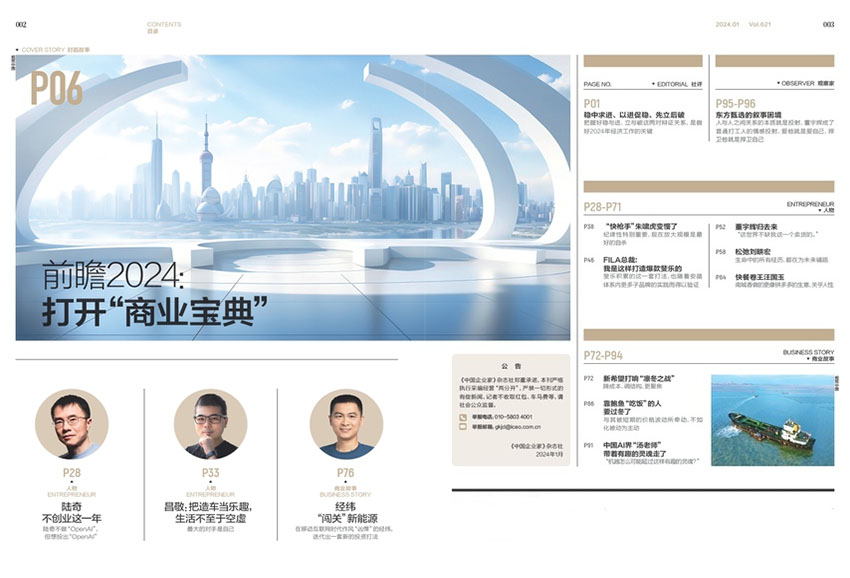 雜志以深度報道、專業(yè)分析和前瞻視角著稱,涵蓋經(jīng)濟、商業(yè)、管理、創(chuàng)新等多個領(lǐng)域。在雜志的版面中,讀者可以看到對國內(nèi)外經(jīng)濟形勢、產(chǎn)業(yè)動態(tài)、企業(yè)管理實踐、商業(yè)趨勢的深入解讀,以及對企業(yè)家成功經(jīng)驗、智慧分享和價值觀念的探討。作為商業(yè)領(lǐng)域的權(quán)威媒體,雜志不僅關(guān)注企業(yè)的經(jīng)營管理和市場競爭,更注重企業(yè)家的人文關(guān)懷、社會責任和社會影響力。通過報道企業(yè)家的創(chuàng)業(yè)故事、成功經(jīng)驗和價值觀念,激勵更多的創(chuàng)業(yè)者勇于擔當、創(chuàng)新發(fā)展,推動中國經(jīng)濟的健康發(fā)展和社會進步。