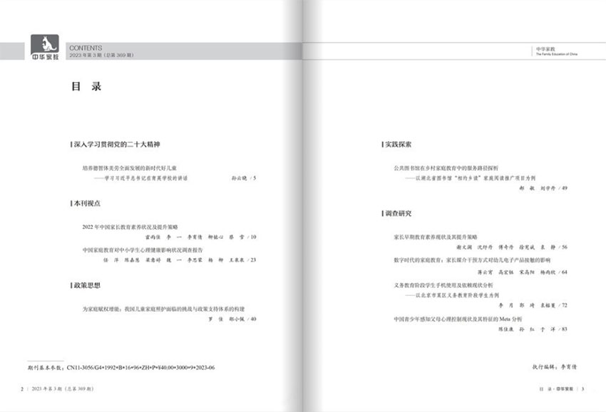 《中華家教》雜志是一本面向廣大家長和家庭教育工作者,專注于家庭教育領(lǐng)域研究和報道的專業(yè)期刊。該雜志以科學(xué)的家庭教育理念、鮮活的家庭教育事例,以及全球化的家教視野,為家長提供新穎、科學(xué)、智慧、實用的家庭教育理念、方法和咨詢。致力于幫助家長更好地理解和引導(dǎo)孩子健康成長,推動家庭教育與學(xué)校教育、社會教育形成合力,共同培養(yǎng)出優(yōu)秀的下一代。雜志內(nèi)容豐富,全方位地展示了家庭教育的方方面面。該雜志的編輯團(tuán)隊由一批具有豐富經(jīng)驗和高度責(zé)任心的教育工作者組成,他們深入挖掘家庭教育領(lǐng)域的熱點問題,為廣大家長和教育工作者提供了大量有價值的參考信息。