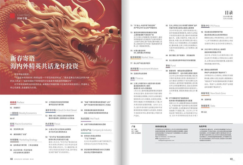 作為中國證券市場的見證者和推動者,雜志以其權(quán)威性和專業(yè)性贏得了讀者的信任和認(rèn)可。雜志擁有一支由知名財經(jīng)評論員、投資專家和市場分析師組成的優(yōu)秀編輯團(tuán)隊,他們深入市場一線,及時準(zhǔn)確地捕捉到市場的最新動向和脈搏,為讀者呈現(xiàn)豐富多彩的財經(jīng)資訊和深度報道。雜志的辦刊理念是眼光即價值,這一理念體現(xiàn)在雜志的每一期報道和分析中。雜志始終堅持客觀公正、質(zhì)量至上的原則,力求為讀者呈現(xiàn)真實、可信的財經(jīng)信息,幫助讀者把握投資機會,規(guī)避風(fēng)險。